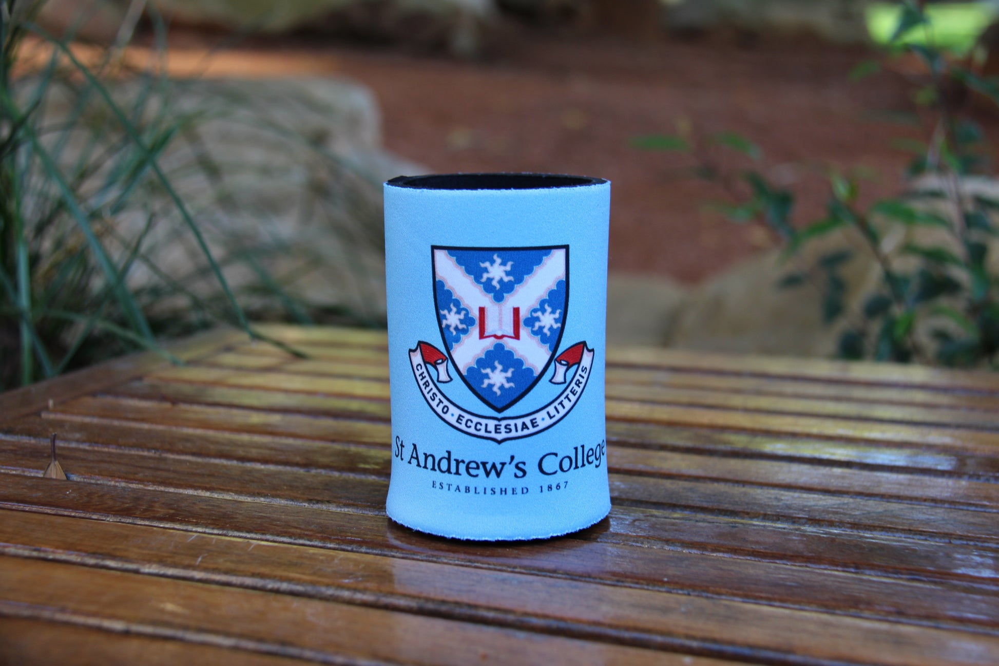 This product is specifically designed for cans of 345ml, 355ml, and 375ml. Its non-slip rubber base ensures a secure grip. It also features the College crest and the Lion Rampant.